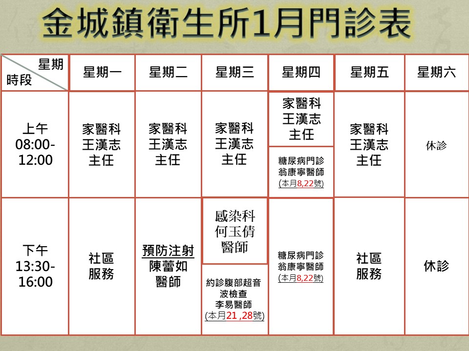 *註:上午門診時間早上08點至中午12:00分,掛號時間08:00至11:30分止 ;