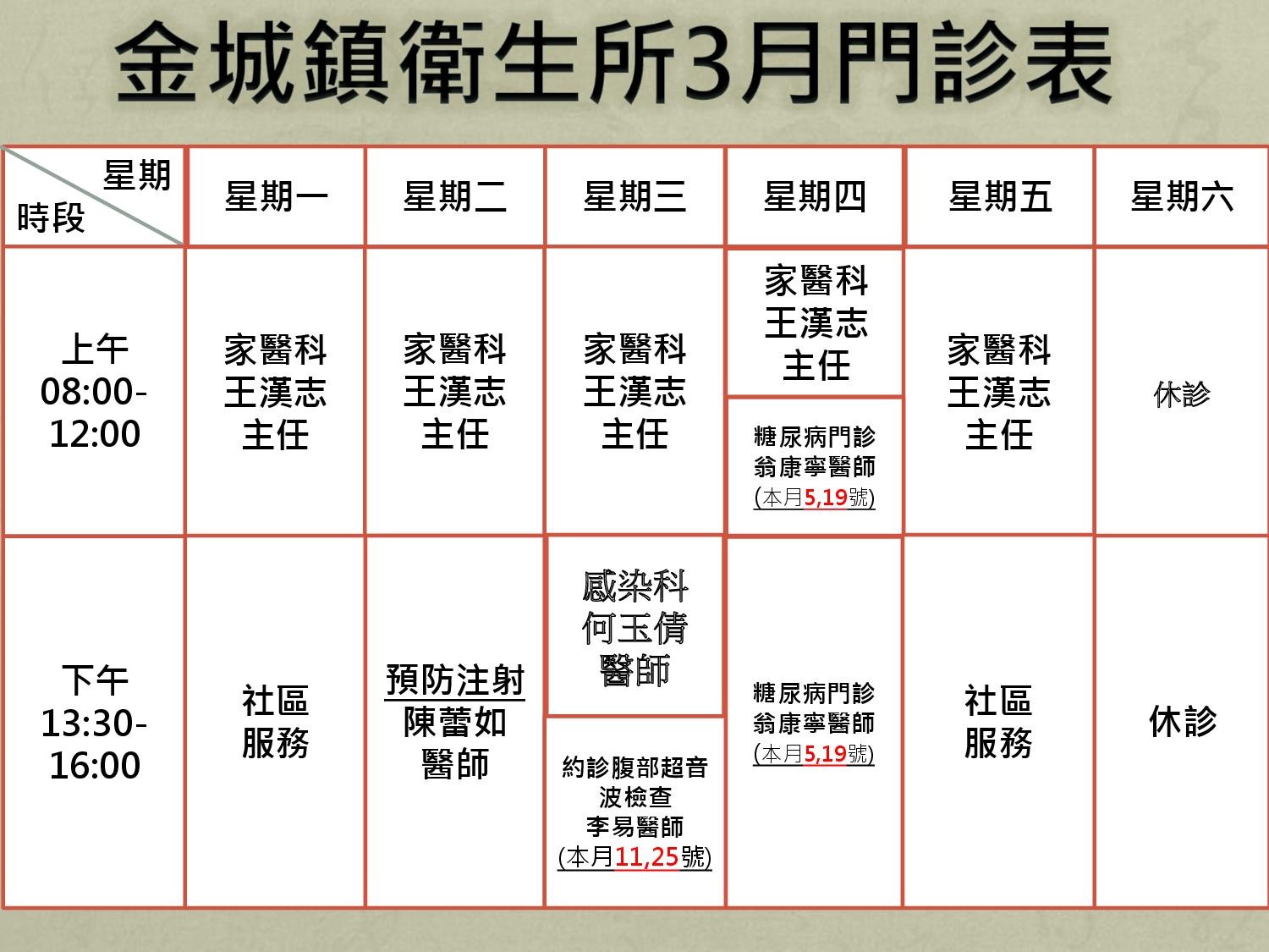 *註: 翁康寧醫師糖尿病門診時段調整為: