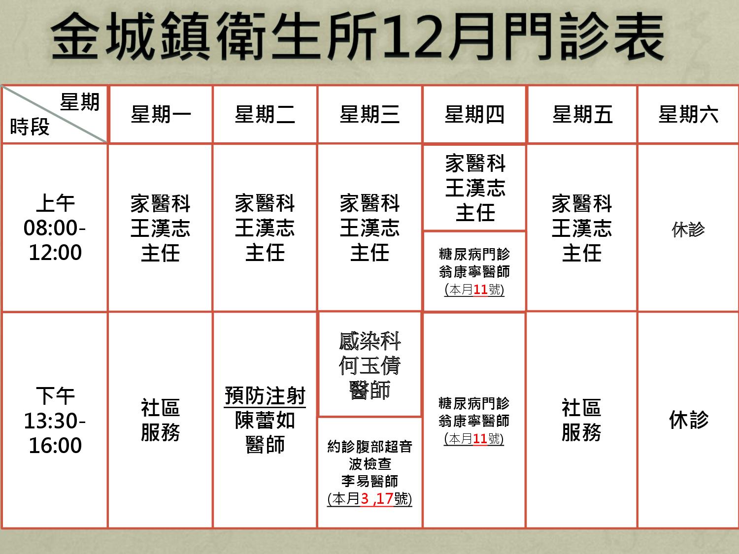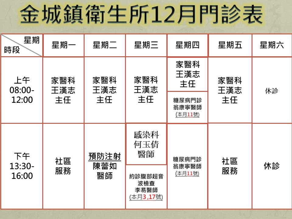 *註:上午門診時間早上08點至中午12:00分,掛號時間08:00至11:30分止 ;