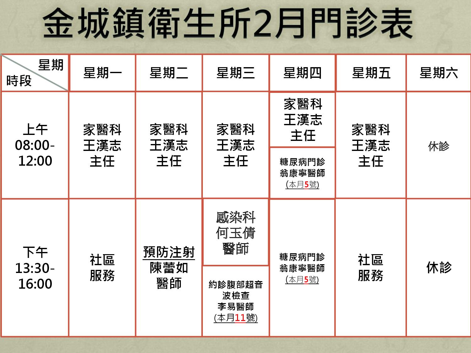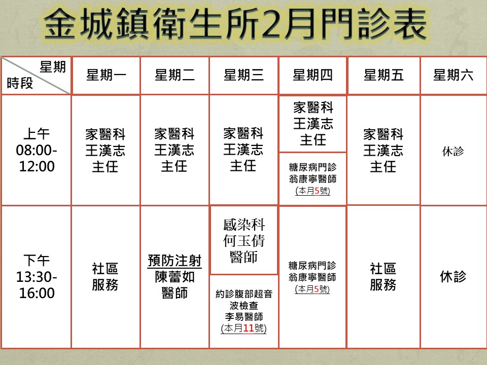 *註: 2月27至28日和平紀念日停診, 不便之處, 敬請見諒.